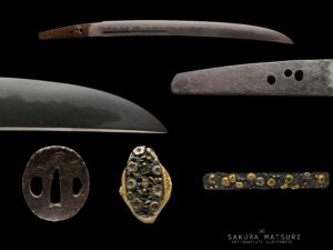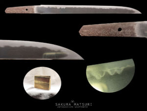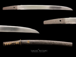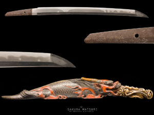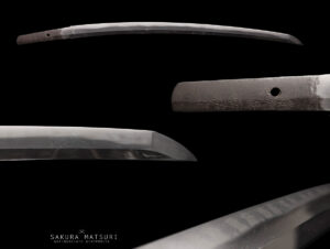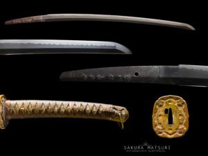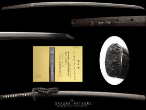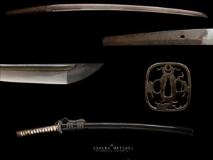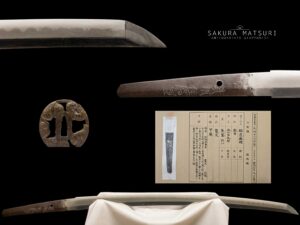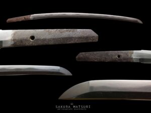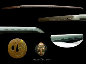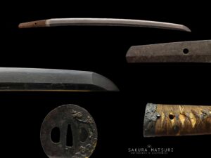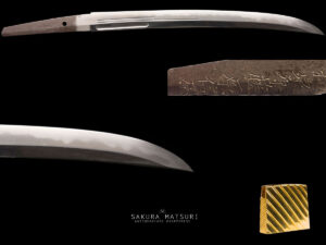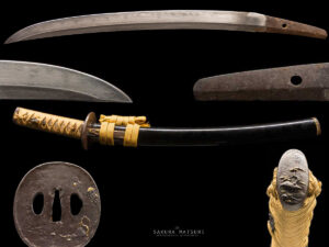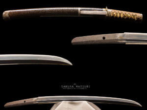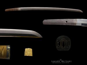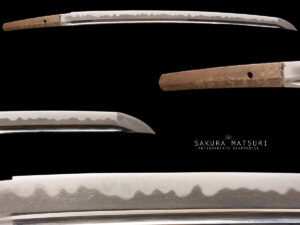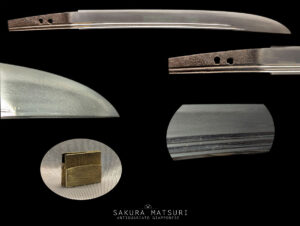 Katana del periodo Koto risalente al primo Muromachi firmata Bishu Osafune. Hada forte ed appariscente consistente di itame misto a mokume. Lo hamon è un ko suguha regolare in nien e nioi deki. Il boshi è suguha, in linea con ...