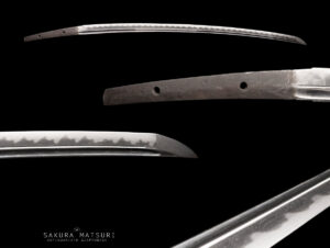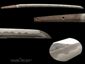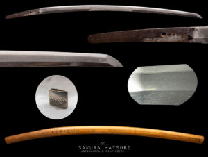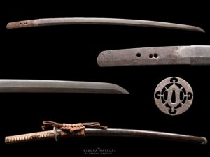 Katana Bizen Osafune con sugata shinogi zukuri, torii zori, chu kissaki. Hada itame mista a mokume con masame nello shinogi. Hamon suguha in nioi deki e ko nie con togari nel monouchi. Boshi suguha con kaeri fukai. Il nakago è ...