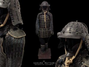 Tatami Gusoku risalente al periodo Edo montata su stand d'epoca. Do, corazza, composta da Karuta sane, placche di metallo di forma rettangolare uniti assieme da maglia metallica. Il kabuto รจ anch'esso di tipologia tatami composto da cinque placche pieghevoli e ...