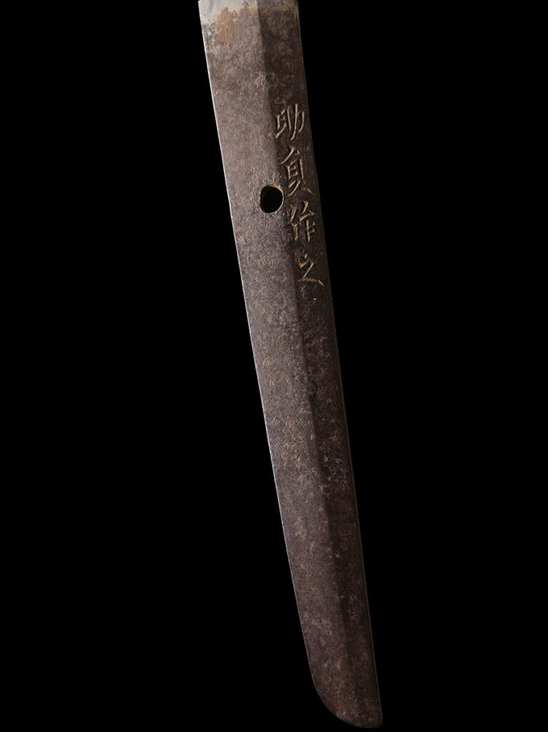 Firmata Sukezane saku kore. Sugata tendente al Koshi zori, iori mune con chu kissaki. La hada è un itame molto compatto e regolare. Lo hamon è chu suguha in un brillante nioi deki, molto regolare. Il boshi è suguha ko maru, con kaeri medio. Il nakago è ubu, 1 mekugi ana, ha agari kurijiri nakagojiri, con kiri yasurime. La lama è montata in koshirae buke tsukuri, con tsuba di tipo Nanban a tema fenice e dragone. Fuchi e kashira sono della scuola Goto a tema peonia decorati in argento e oro. La katana, come visibile in foto, necessita di un intervento di restauro. E’ stata valutata dal nostro politore come completamente restaurabile. Anche il koshirae necessita di intervento, deve essere restaurata la saya e rifatto lo tsuka maki. I menuki sono mancanti. Il prezzo finale tiene conto delle condizioni ed è stato decurtato del valore degli interventi necessari. La struttura della katana è solida, avendo ricevuto poche politure in passato, e rappresenta un’ottima possibilità di investimento.