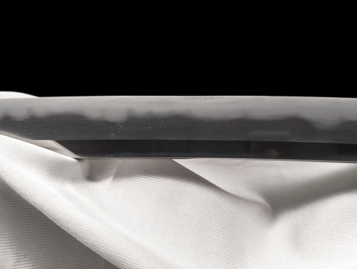 | Nome oggetto (kanji): 刀 Nome oggetto (romaji): Katana Epoca: Primo Edo, Shinto, 1600. Nagasa: 68,4 cm Sori: 2,3 cm Moto-haba: 3,1 cm Saki-haba: 2,2 cm Moto-kasane: 0,8 cm Saki-kasane: 0,6 cm Mei: 尾州信高 – Bishu Nobutaka (attribuzione) Montatura: Koshirae buke tsukuri Certificato: NBTHK |