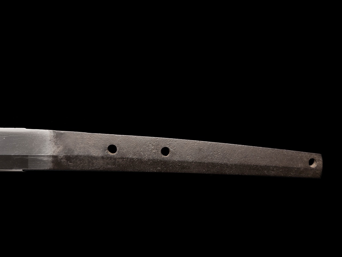| Nome oggetto (kanji): 刀 Nome oggetto (romaji): Katana Epoca: Muomachi, tardo XIV sec. Nagasa: 71,5 cm Sori: 1,4 cm Moto-haba: 3,1 cm Saki-haba: 2,0 cm Moto-kasane: 0,5 cm Saki-kasane: 0,4 cm Mei: 包真 – Kanezane (ginzogan) Montatura: buke tsukuri koshirae – Shirasaya con sayagaki Certificato: NBTHK |