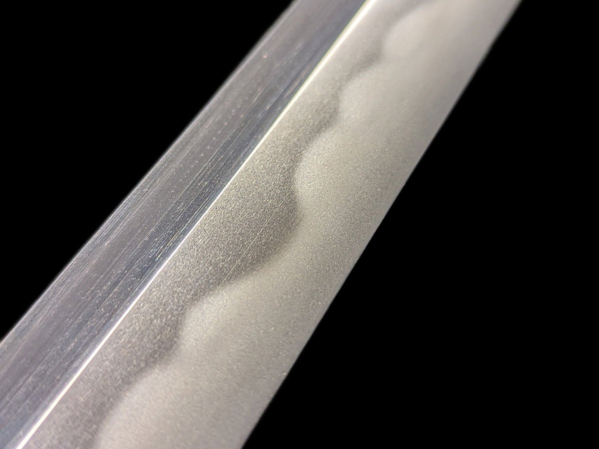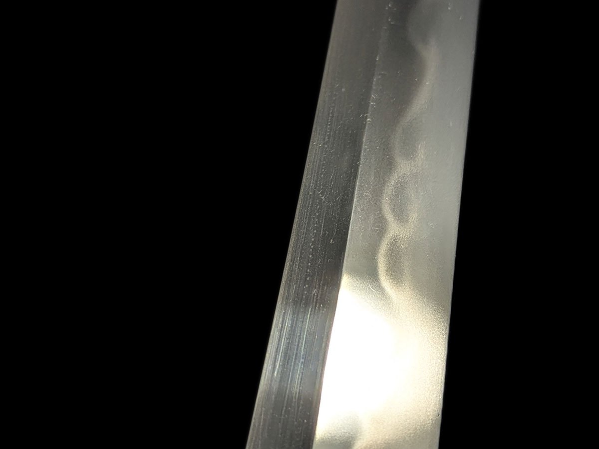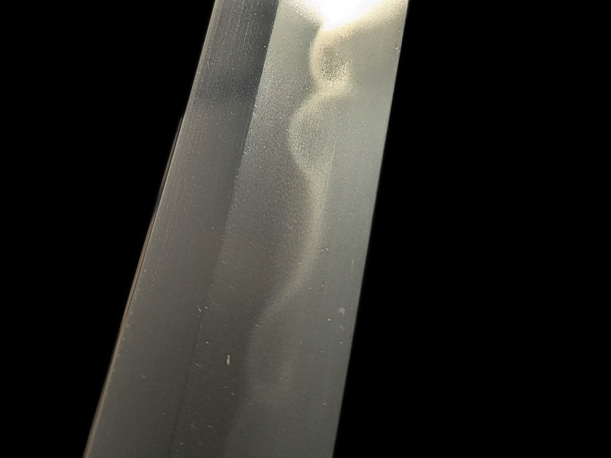 | Nome oggetto (kanji): 刀 Nome oggetto (romaji): Katana Epoca: Edo, Shinshinto Nagasa: 71,1 cm Sori: 1,9 cm Moto-haba: 3,2 cm Saki-haba: 2,3 cm Moto-kasane: 0,7 cm Saki-kasane: 0,5 cm Firma: omote – Ozaki Gengoemon Suketaka 尾崎源五右衛門助隆 ura – Tenmei 2 nen 2 gatsu hi 天明二年二月日 (Febbraio 1782) Montatura: Koshirae buke tsukuri |