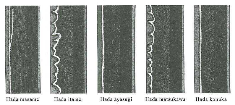Itame: Anche lo itame ricorda gli anelli della crescita annuale degli alberi, ma di forma più regolare rispetto al mokume e senza nagare. Si divide in o itame (largo), chu itame (medio) e ko itame (stretto), secondo la dimensione della hada.